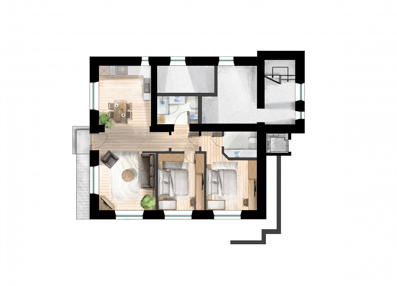 Diese charaktervolle Villa aus dem Jahr 1910 wurde ursprünglich als Sommerresidenz für Mailänder Familien errichtet. Bekannt ist sie vor allem durch den Rechtsanwalt Clauser, der hier lebte, arbeitete und Gedichte im Nonstaler Dialekt verfasste. Das Gebäude umfasst heute vier großzügige Wohneinheiten, die sich über mehrere Etagen erstrecken und den historischen Charme der Villa bewahren. Die Lage an der historischen Viale Stazione, einst Zufahrt zum Bahnhof der ehemaligen Nonsbergbahn, macht die Immobilie zu einem besonderen Stück regionaler Geschichte.