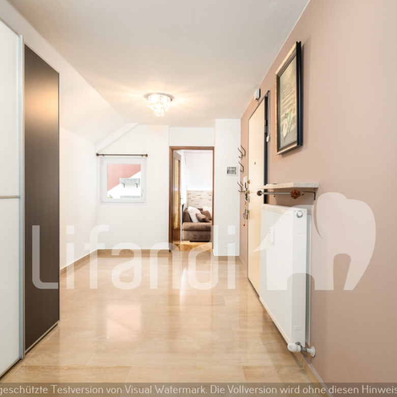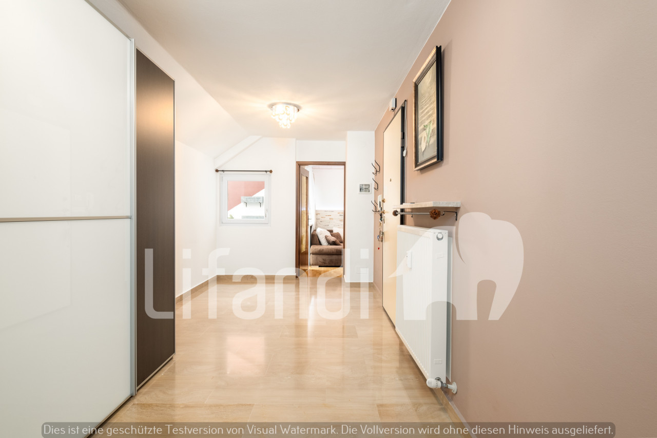 Zum Verkauf steht eine wunderschöne Dreizimmer-Mansardenwohnung im letzten Stock eines gepflegten Wohnhauses in der begehrten Ortschaft Girlan.
