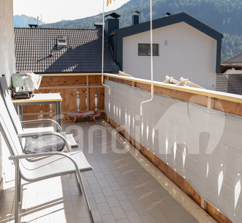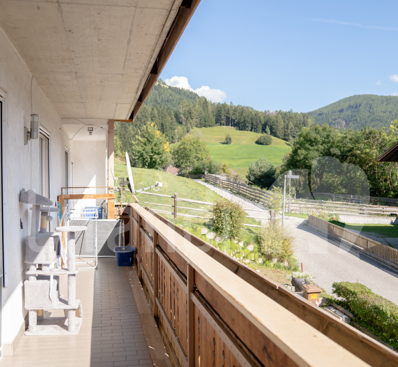 Diese 4-Zimmerwohnung befindet sich in Percha und präsentiert sich in sehr gutem Zustand. Die Fenster wurden kürzlich erneuert. Die Wohnung umfasst drei Schlafzimmer, zwei Badezimmer, ein Wohnzimmer sowie eine Küche mit Speis. Besonders hervorzuheben ist der sehr großzügige, südlich ausgerichtete Balkon. Zur Wohnung gehören außerdem ein abgetrennter Keller sowie eine geschlossene Garage. Der Außenbereich wird gemeinschaftlich mit dem Eigentümer der Wohnung im 1. Obergeschoss genutzt. Die Immobilie liegt in einer besonders ruhigen und sonnigen Umgebung in Percha – sowohl im Sommer als auch im Winter. Trotz der ruhigen Lage erreicht man in nur 2 Minuten die Hauptstraße und in ca. 8 Minuten das Zentrum von Bruneck.