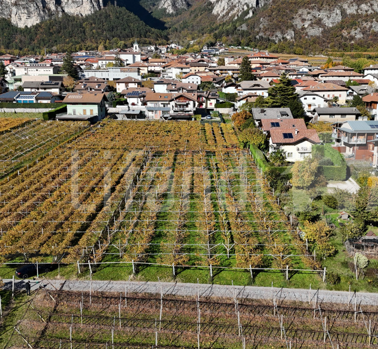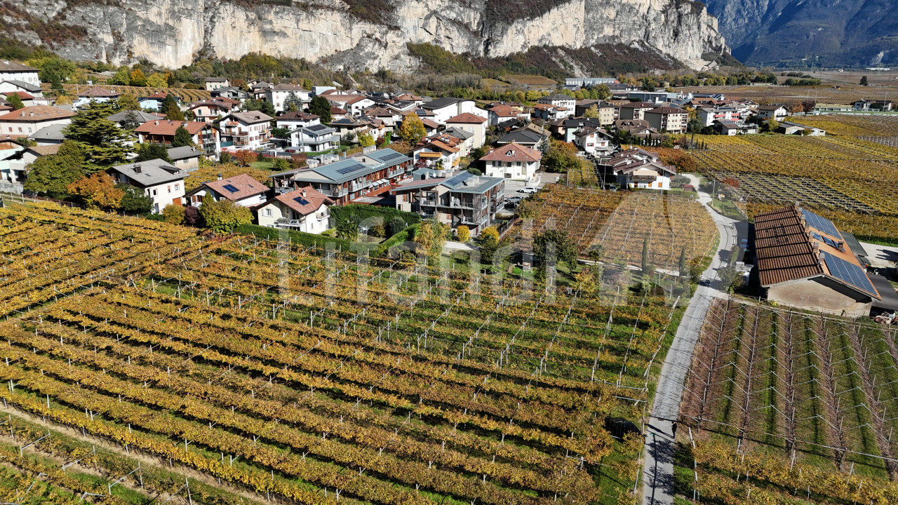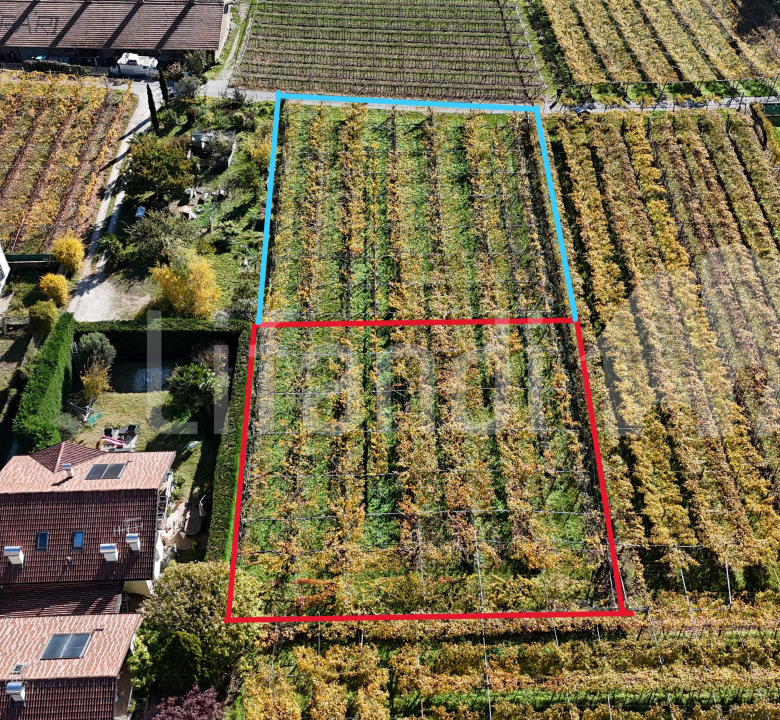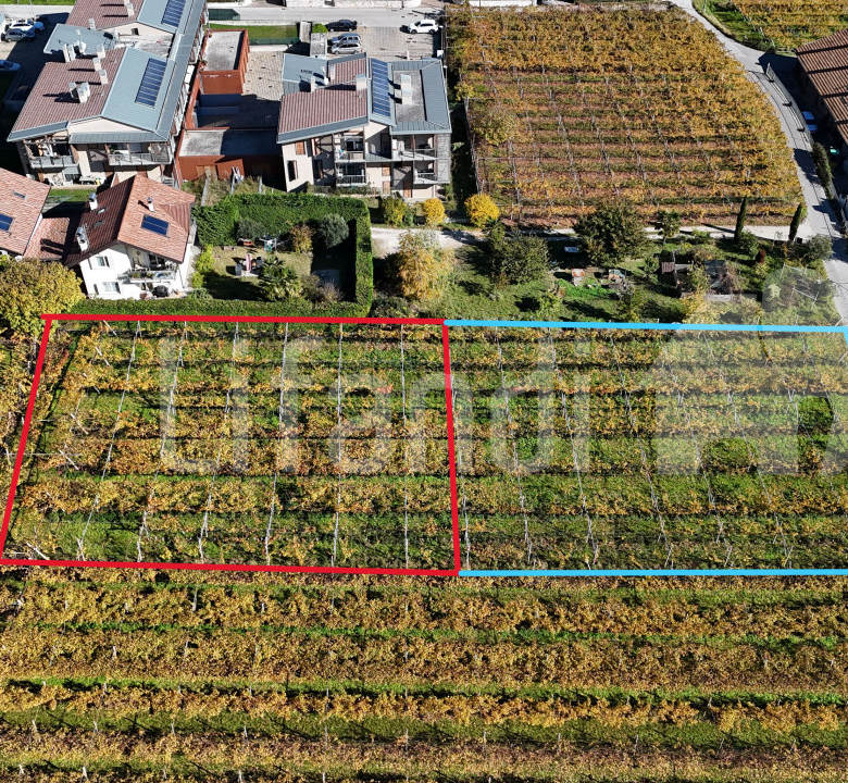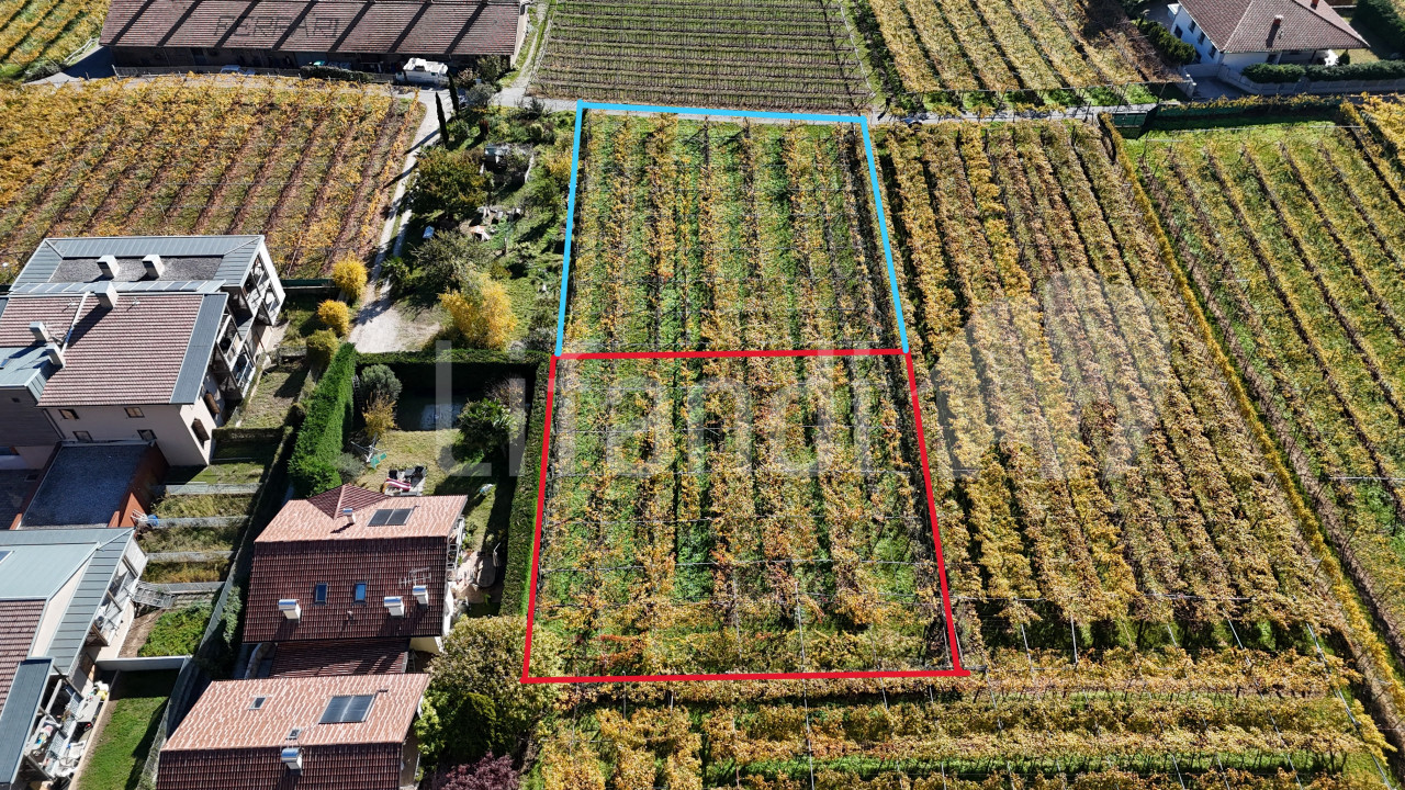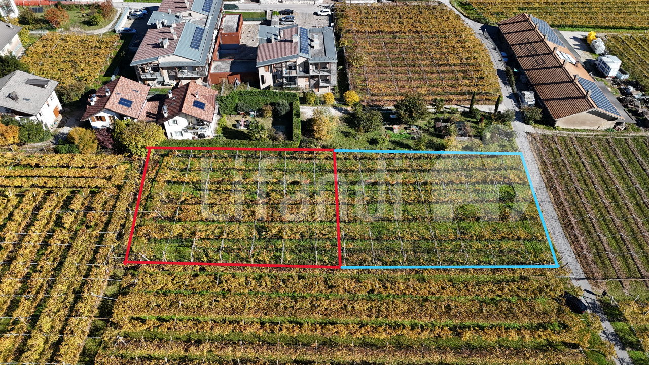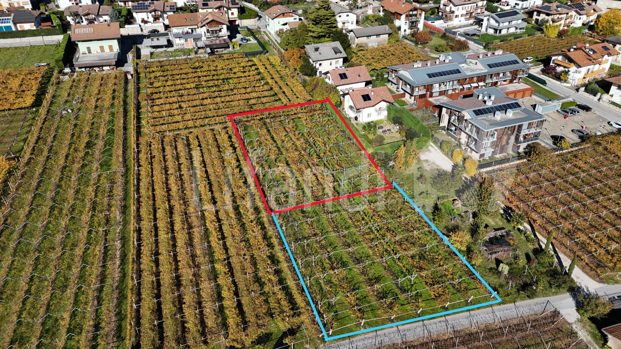 In Roverè della Luna bieten wir exklusiv ein 1.037 m² großes Baugrundstück (rot markiert) mit einem Bauvolumen von 2.074 m³ zum Verkauf an.