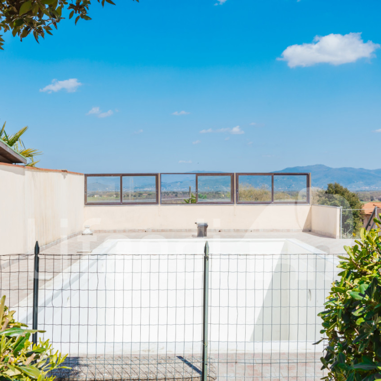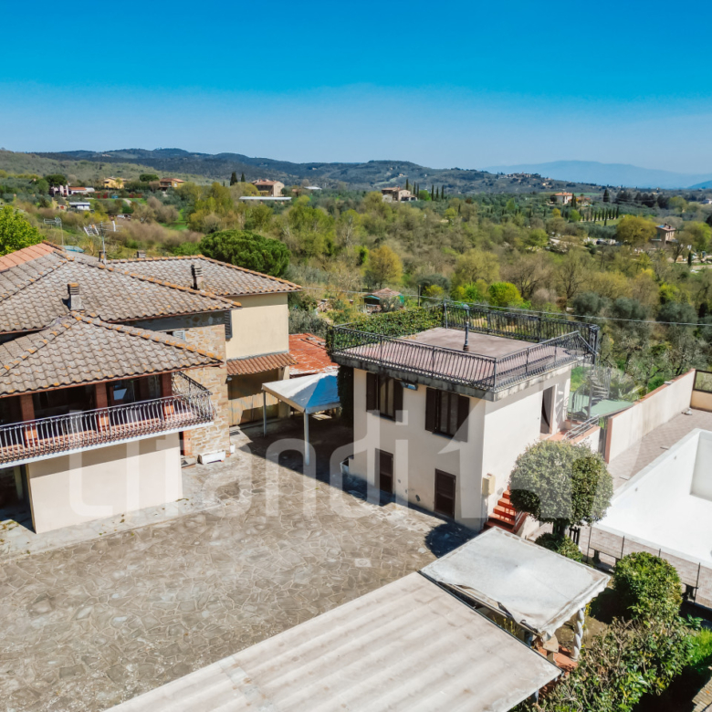 Autentisches Toskana Anwesen mit Olivenhain , Panoramablick und Pool in Ciggiano , Val di Chiana Der Hügel in der Toskana, nahe Arezzo und dem Lago Trasimeno, erwartet Sie dieses charmante Anwesen mit mediterranem Lebensgefühl. Das Anwesen besteht aus einer freistehenden Villa (teilweise angebaut, dennoch unabhängig) und einem großzügigen Nebengebäude, verteilt auf ca. 320 m² Gesamtfläche. Die Ursprünge des Haupthauses reichen ins Jahr 1800, ergänzt 1980 um einen zweiten Flügel. Alles ist eingebettet in ein rund 1.790 m² großes, komplett umzäuntes Grundstück mit ca. 60 Olivenbäumen, gepflegtem Garten und zwei separaten Zufahrten.