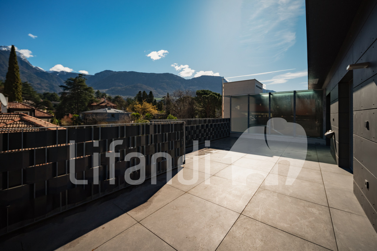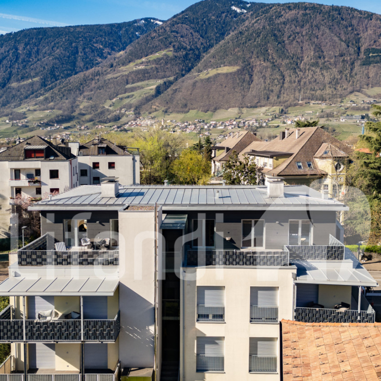 Dieses exklusive 3-Zimmer-Penthouse in Meran besticht durch seine zentrale Lage, nur 5 Gehminuten vom Stadtzentrum entfernt, und bietet modernen Wohnkomfort auf höchstem Niveau. Die Wohnung umfasst eine großzügige Wohnküche, zwei helle Zimmer, einen Vorraum, einen Abstellraum, ein elegantes Badezimmer sowie ein separates WC. Ein Kellerraum ist im Kaufpreis bereits enthalten und sorgt für zusätzlichen Stauraum. Optional kann eine Garage für 35.000 € dazu erworben werden, um das Angebot ideal abzurunden. Diese Immobilie vereint stilvolles Wohnen, eine Top-Lage und eine durchdachte Raumaufteilung – perfekt für Stadtliebhaber, die Wert auf Qualität und Komfort legen.
