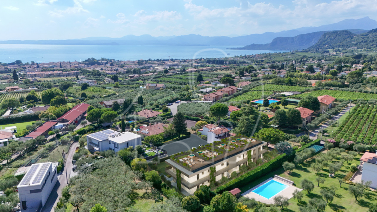 In dominanter Hügellage, eingebettet in Grün und absoluter Ruhe, entsteht Villa Elen, eine exklusive, neu realisierte Wohnanlage mit nur 10 Einheiten. Die Anlage überzeugt durch modernes Design, das sich harmonisch in die Landschaft einfügt, und bietet Wohnungen mit Panoramablick auf den Gardasee, großzügige Außenflächen (private Gärten im Erdgeschoss sowie Terrassen und exklusive Dachterrassen in den oberen Etagen), einen Gemeinschaftspool sowie hochwertige Ausstattungen.