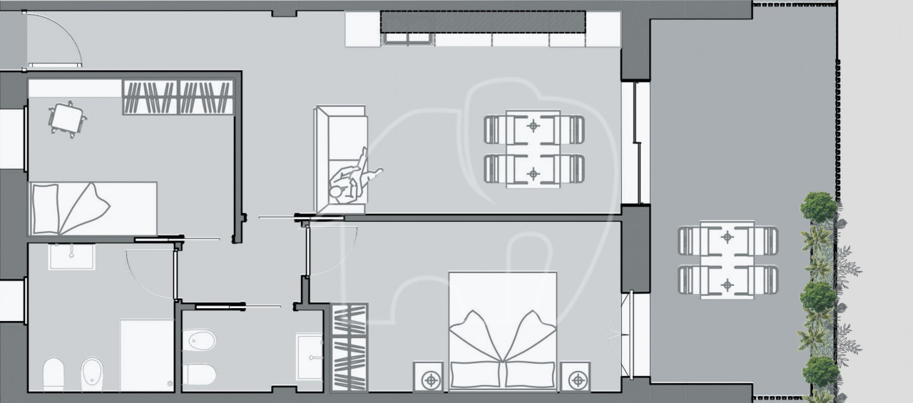 Im Außenbereich verfügt die Wohnung über einen 18 m² großen Balkon und eine Panoramaterrasse auf dem Dach mit privatem Garten – perfekt, um den Seeblick zu genießen, zu entspannen oder Abendessen im Freien zu veranstalten.