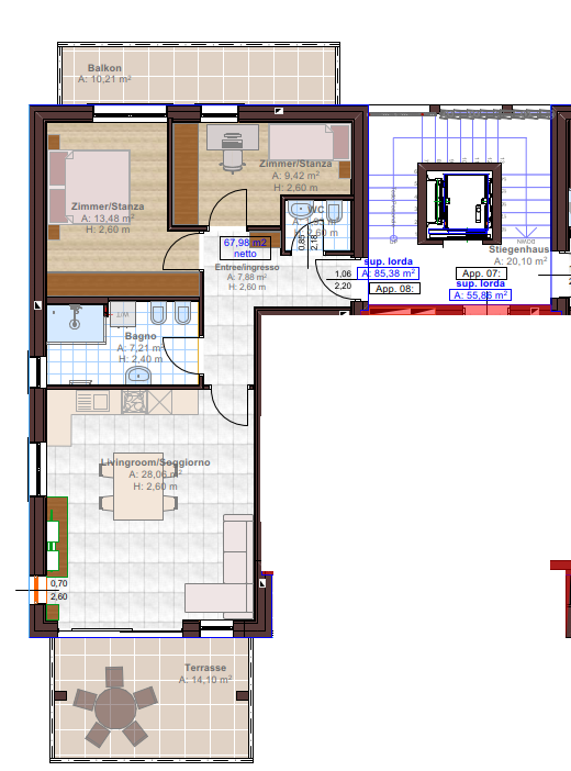 Wir freuen uns, Ihnen 9 moderne Neubauwohnungen in unterschiedlichen Größen und Ausstattungsvarianten in einer der renommiertesten Wohngegenden von Eppan an der Weinstraße anbieten zu dürfen. Das neu errichtete Wohnhaus erstreckt sich über 4 Stockwerke und wird voraussichtlich Mitte 2027 bezugsfertig sein. Die Wohneinheiten überzeugen durch ihre lichtdurchflutete Architektur sowie die Möglichkeit einer individuellen Raumgestaltung. Eine große Auswahl hochwertiger Materialien erlaubt es Ihnen, das Ambiente ganz nach Ihrem persönlichen Lebensstil und Ihren Wünschen zu gestalten. Die Bauweise nach dem „A-Natur-Standard“ garantiert nicht nur langfristige Ersparnisse im Energieverbrauch, sondern auch höchsten Wohnkomfort. Zudem genießen Sie eine 10-jährige Garantie des Bauherrn – für ein sicheres und sorgenfreies Investment. Garagen und Kellerräume stehen separat zum Erwerb zur Verfügung und runden das attraktive Angebot ab.