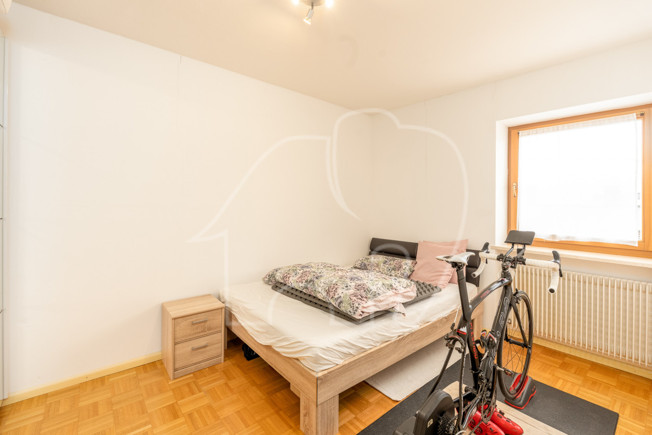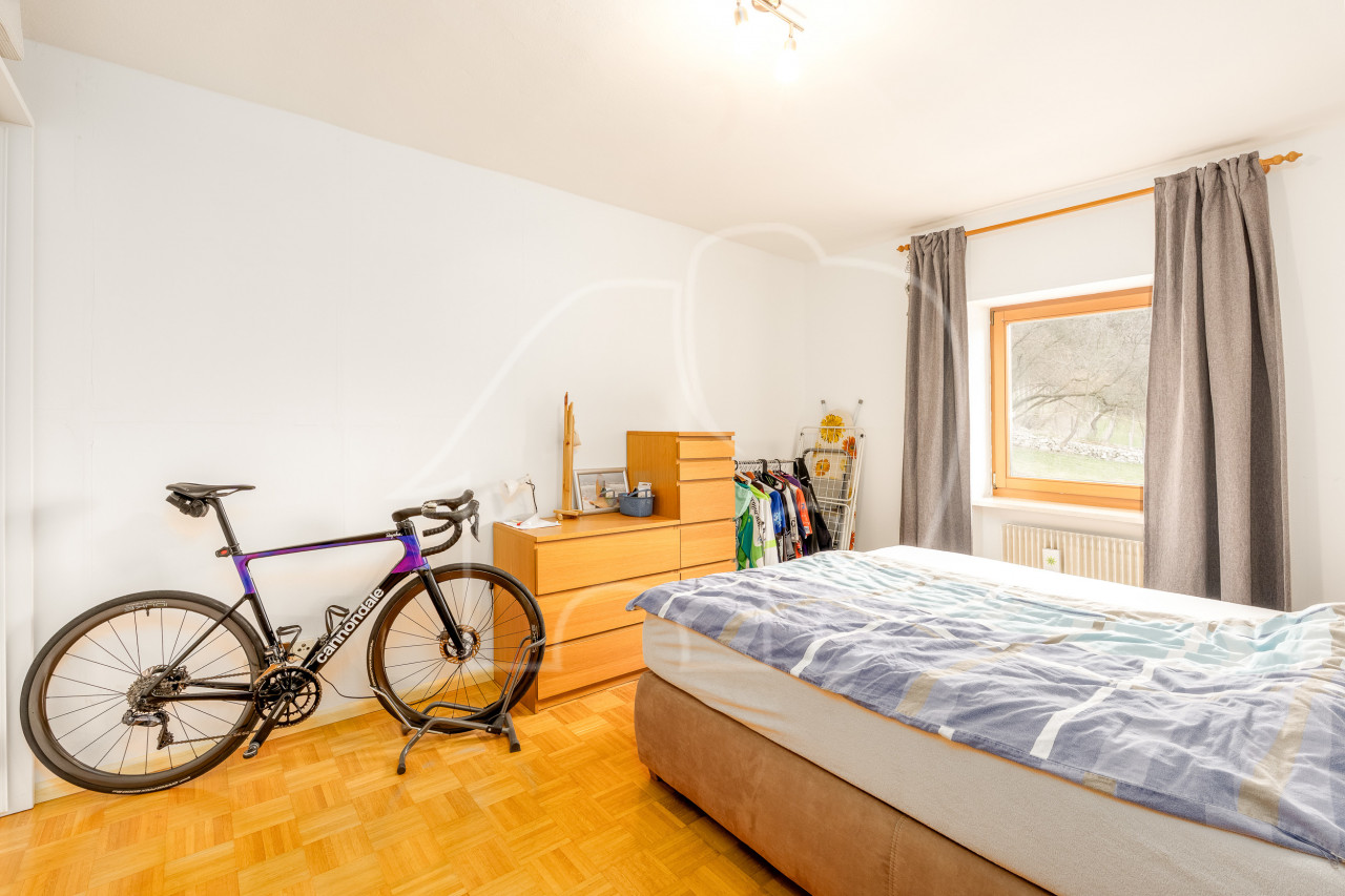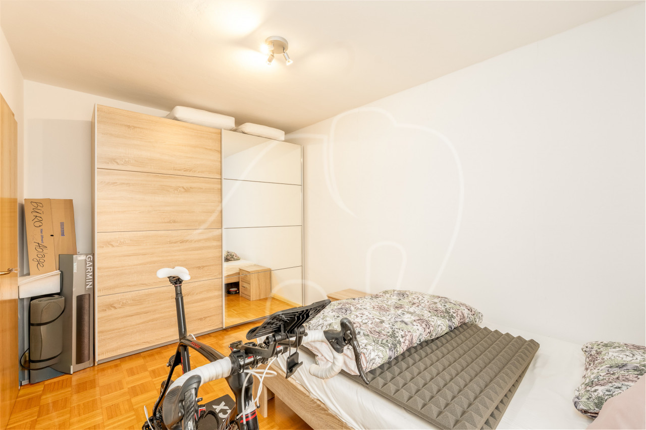 Due camere da letto, entrambe con finestra, offrono possibilità di utilizzo flessibili come camera da letto matrimoniale, camera dei bambini o ufficio. Lo spazio è completato da un ampio bagno con vasca. L’immobile comprende un garage e un posto auto, inclusi nell’offerta.