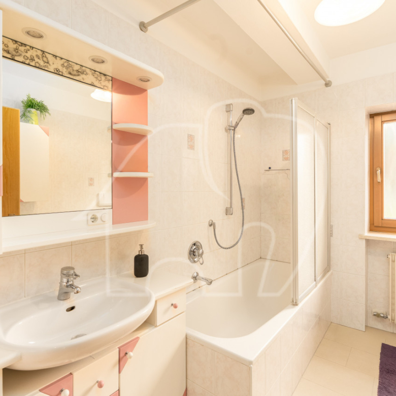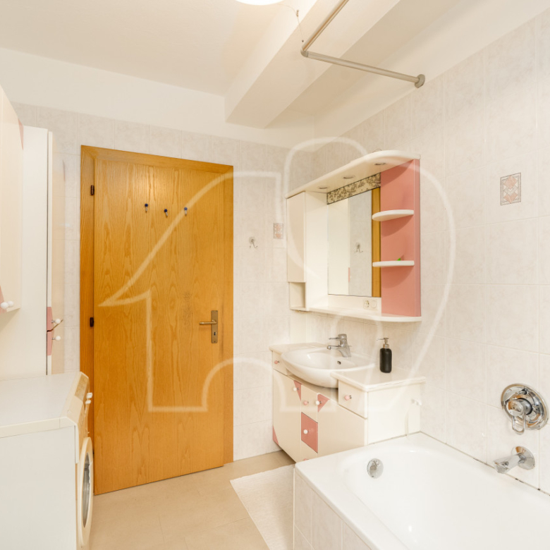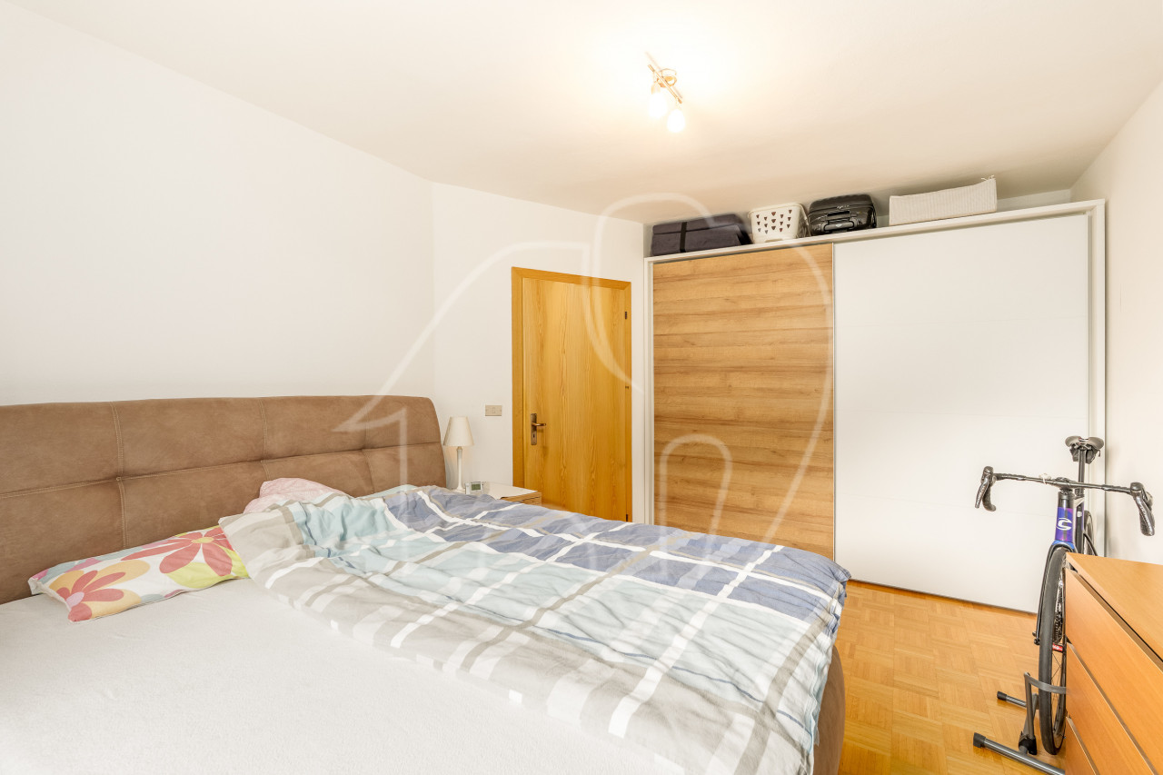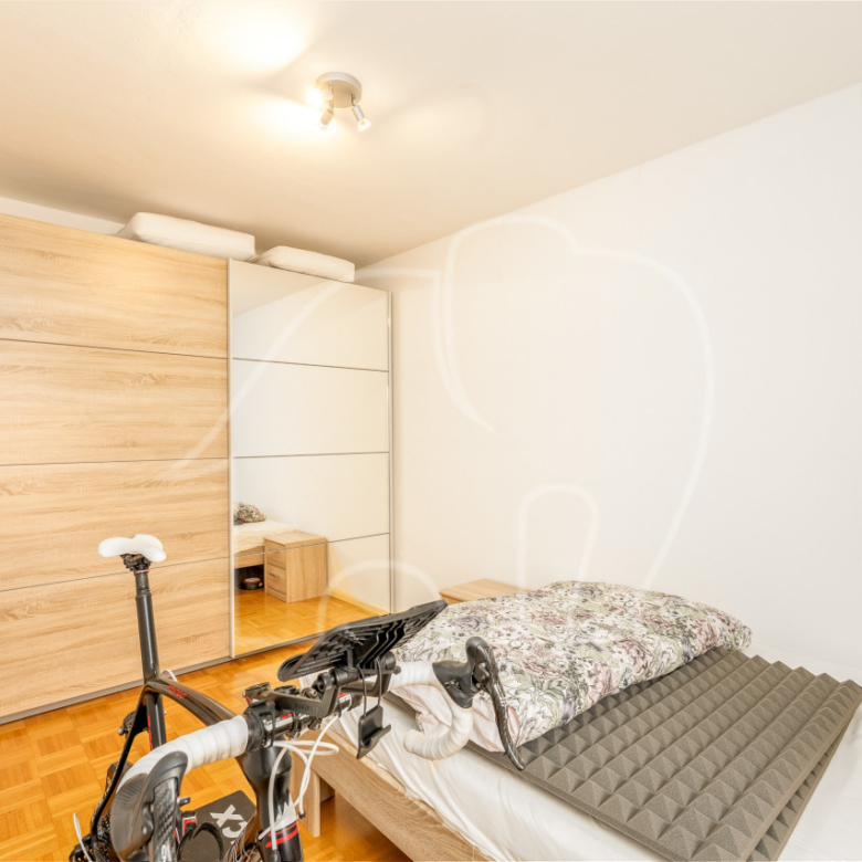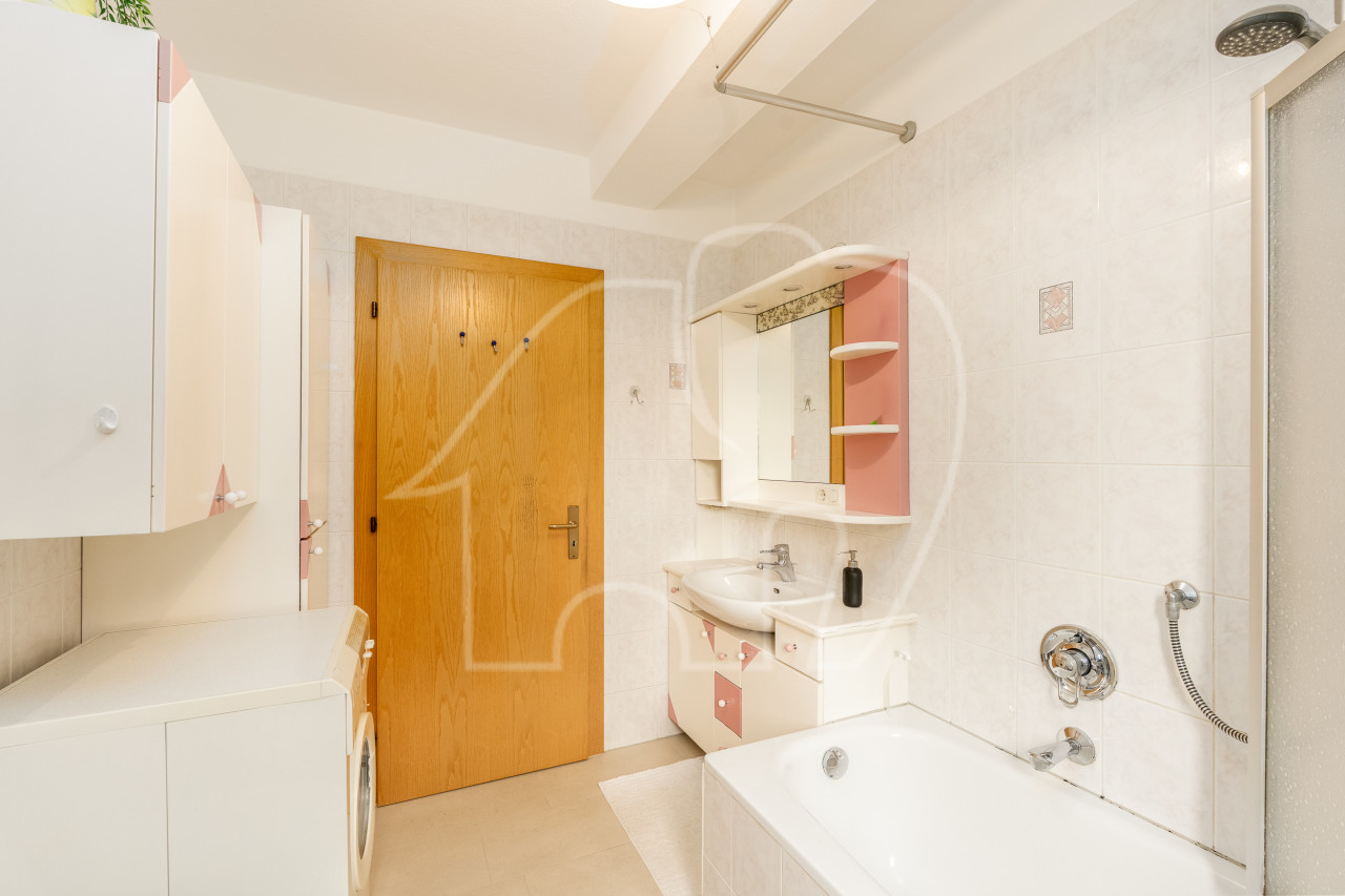 Due camere da letto, entrambe con finestra, offrono possibilità di utilizzo flessibili come camera da letto matrimoniale, camera dei bambini o ufficio. Lo spazio è completato da un ampio bagno con vasca. L’immobile comprende un garage e un posto auto, inclusi nell’offerta.
