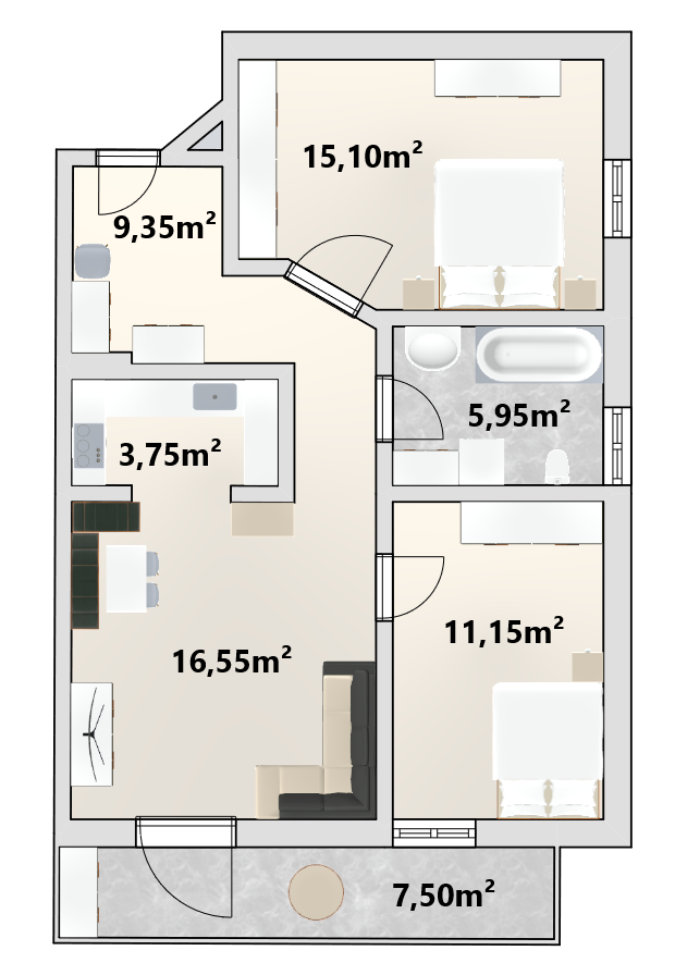 • Tipologia trilocale