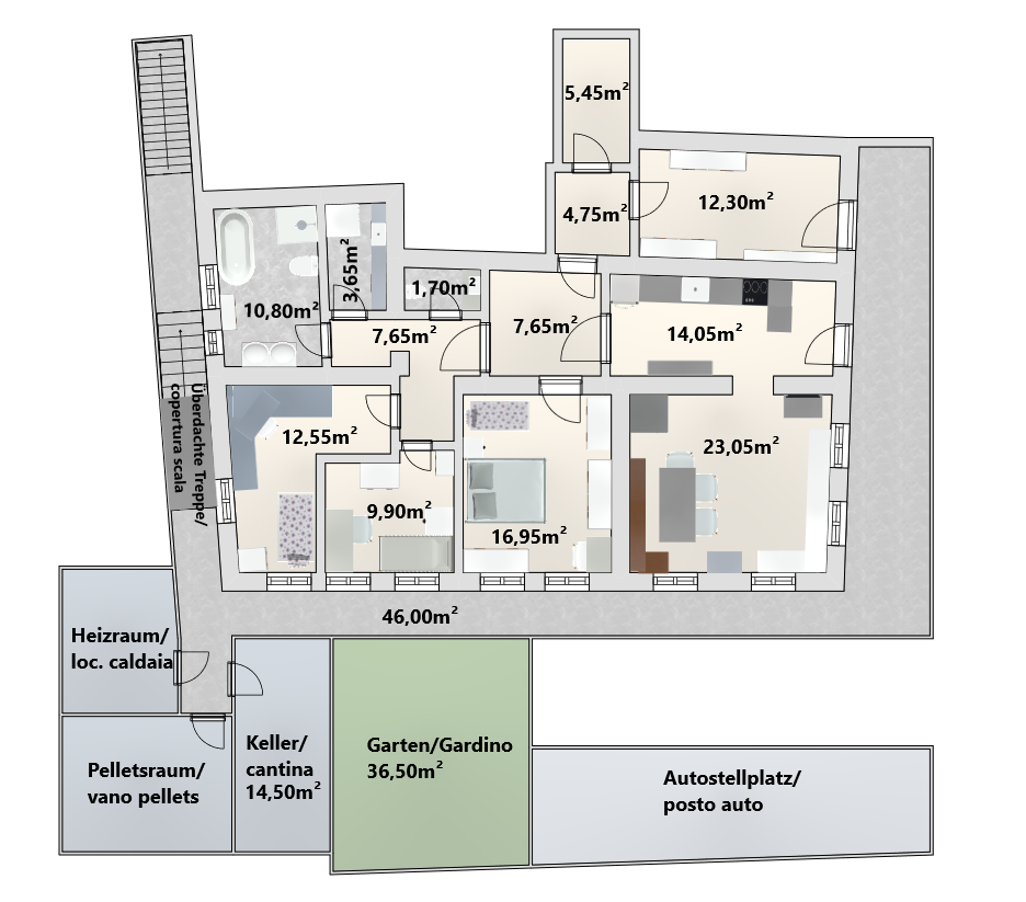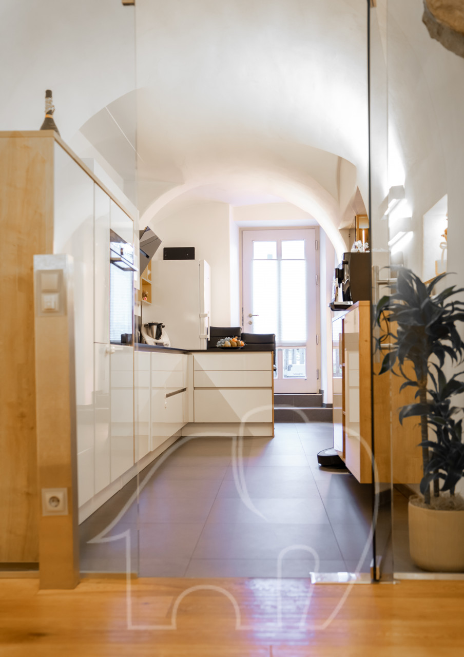 Questo appartamento storico è stato completamente ristrutturato a livello strutturale. Nell’ambito dei lavori sono stati rinnovati integralmente tutti gli elementi costruttivi e tecnici. Sono stati utilizzati esclusivamente materiali di alta qualità come legno, pietra naturale e vetro. Gli ambienti interni sono caratterizzati da soffitti voltati sinuosi, che rappresentano un elemento architettonico storico. Il concept illuminotecnico si basa su una combinazione di luce naturale e corpi illuminanti fissi, integrati da sensori di movimento per una gestione efficiente. L’immobile offre uno standard tecnico moderno e soddisfa le esigenze abitative contemporanee. Si tratta di una proprietà con una configurazione individuale, rivolta in particolare a coloro che attribuiscono grande valore alla sostanza, alla storia e alla lavorazione di altissima qualità.