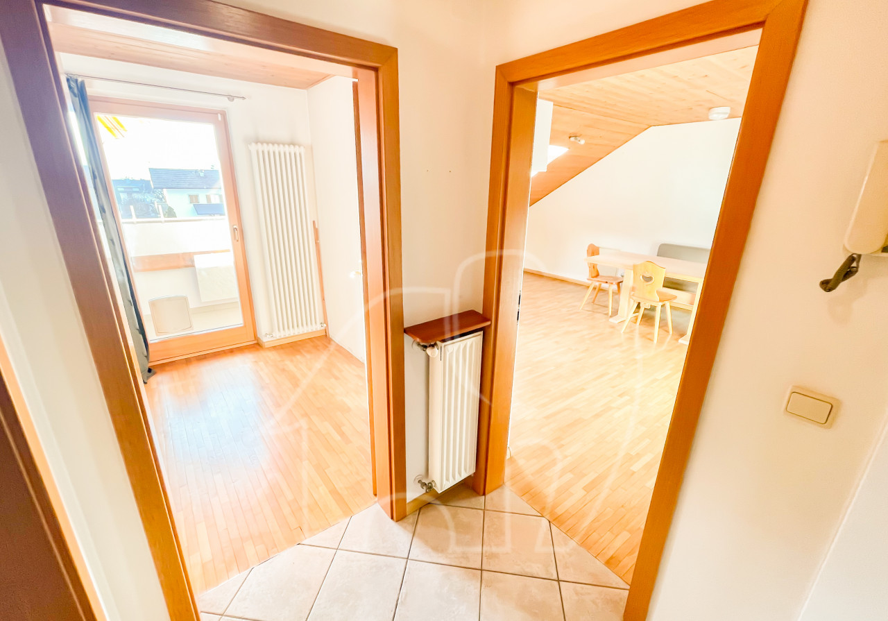 In una zona residenziale tranquilla e piacevole, proponiamo questo bilocale luminoso, che si distingue per la distribuzione funzionale degli spazi e per l’atmosfera accogliente. La soluzione è ideale sia come abitazione principale sia come investimento. L’ampia zona giorno con soggiorno e zona pranzo rappresenta il fulcro dell’appartamento e offre un ambiente arioso e luminoso. Da qui si accede direttamente alla soffitta, utilizzabile come comodo spazio di deposito. Completa la proprietà una cantina privata. Sia dalla zona giorno che dalla camera da letto si accede al balcone soleggiato, ideale per momenti di relax all’aperto. Il bagno è dotato di vasca e completa in modo funzionale l’unità abitativa. È possibile acquistare una garage separatamente al prezzo di € 30.000. Un appartamento che unisce luminosità, funzionalità e qualità dell’abitare.