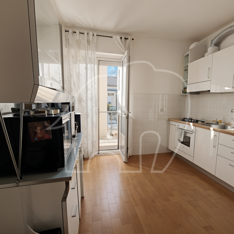 Dall’ingresso-corridoio si accede all’ampio soggiorno, alla camera da letto, al bagno finestrato e alla cucina indipendente con balcone.