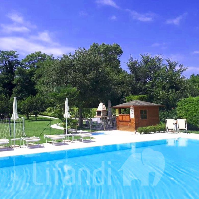 Oggi la proprietà ospita un’accogliente struttura ricettiva a conduzione familiare, ma per dimensioni, distribuzione degli spazi e atmosfera, rappresenta una soluzione ideale come dimora privata di prestigio, perfetta per chi desidera vivere nel verde in un contesto di assoluta tranquillità, pur restando a pochi minuti dal Lago di Garda e dai principali servizi.