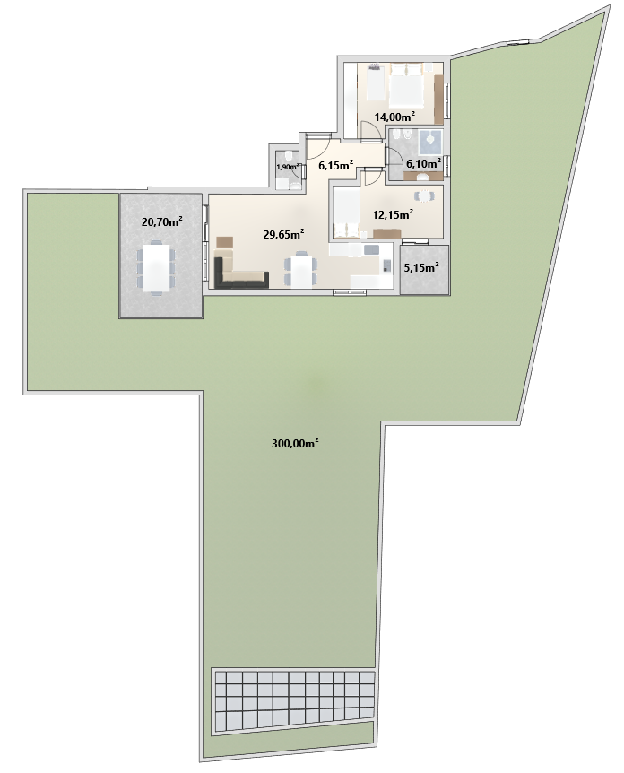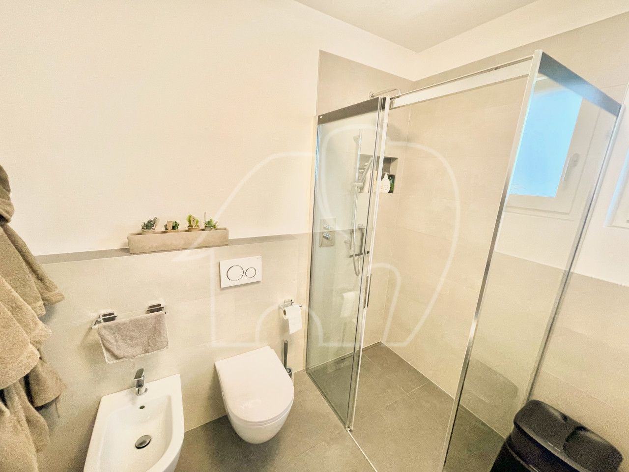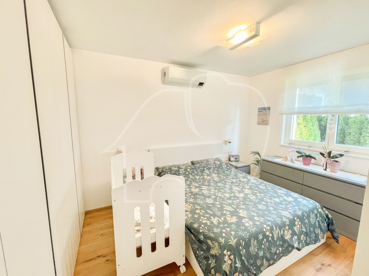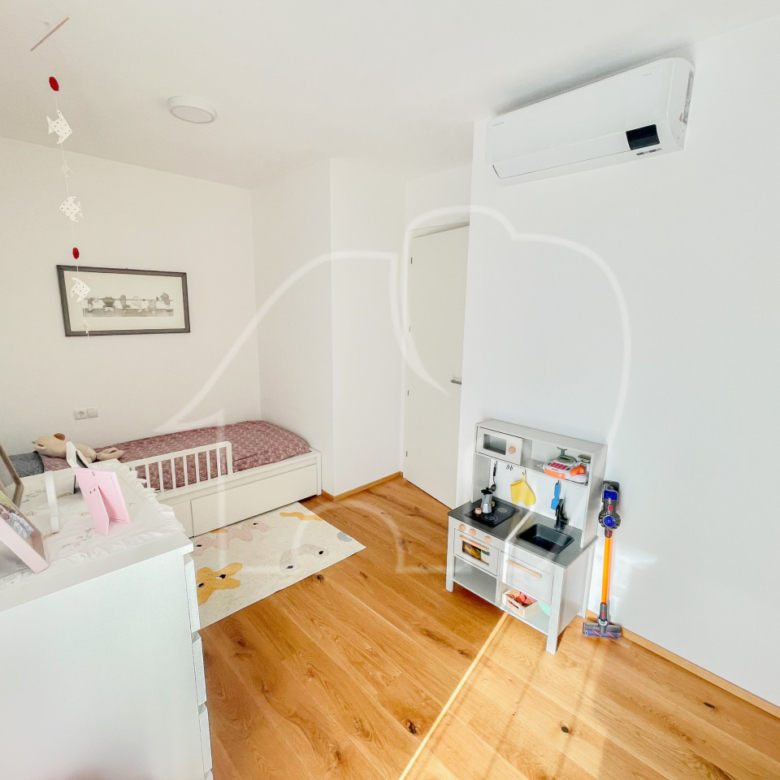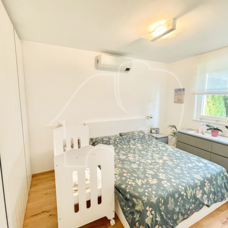 L’appartamento dispone di due camere da letto luminose. Da una delle camere da letto si accede direttamente al giardino. Inoltre, l’appartamento dispone di un bagno spazioso e di un WC separato per gli ospiti.