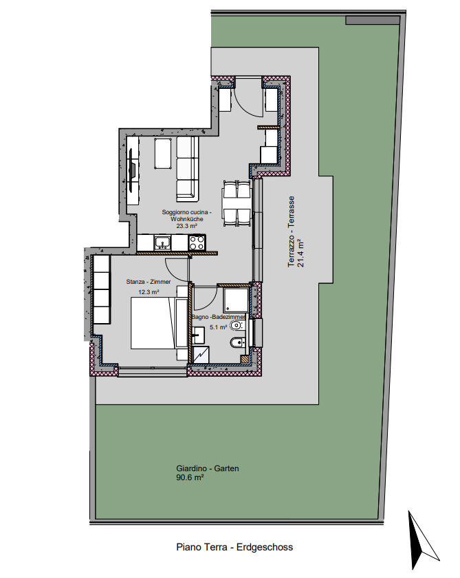 Scoprite questo moderno bilocale al piano terra: una vera casa in cui sentirsi bene a Egna. L’appartamento di nuova costruzione unisce comfort contemporaneo e sostenibilità, con una disposizione degli spazi luminosa e open space. L’ampia zona giorno con cucina a vista è il cuore dell’abitazione e crea un’atmosfera calda e accogliente, perfetta per vivere, cucinare e condividere momenti piacevoli.