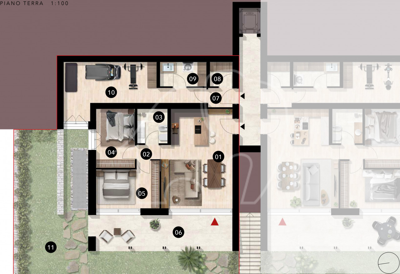 APPARTAMENTO 1 – QUADRILOCALE AL PIANO TERRA CON GIARDINO