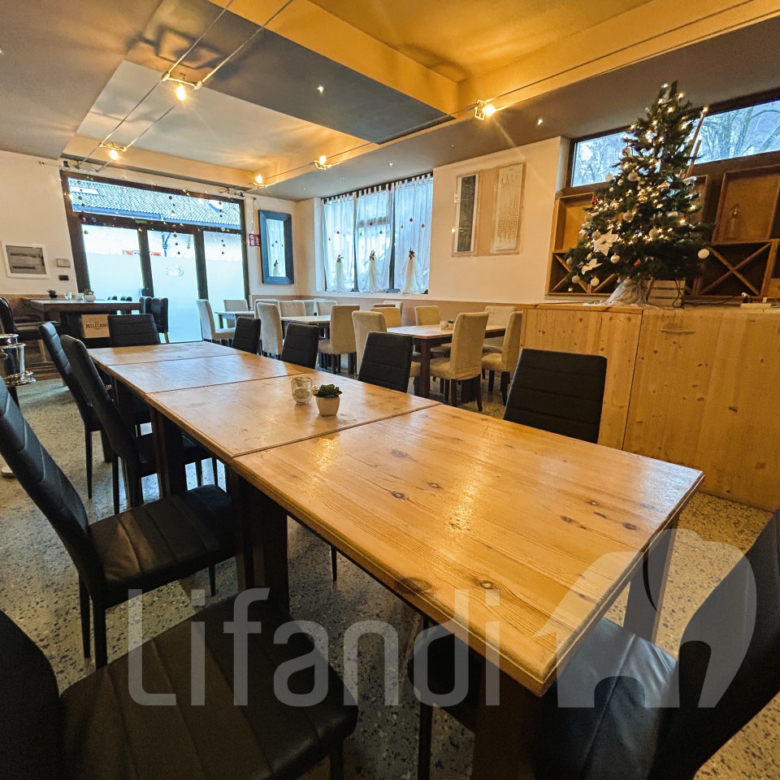 Il locale dispone di una cucina completamente attrezzata, banco bar, circa 50 posti a sedere interni e 25 esterni, due bagni con antibagno, ripostiglio e una cantina al piano interrato. Nel cortile è possibile parcheggiare due auto.