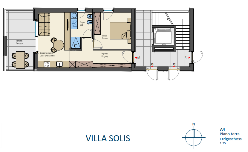 Ogni unità dispone di una cantina privata; i posti auto in garage sono disponibili separatamente.Costruita secondo lo standard CasaClima A Nature, Villa Solis convince con costi di gestione contenuti, riscaldamento a pavimento, impianto fotovoltaico e predisposizione per aria condizionata e sistema d’allarme.