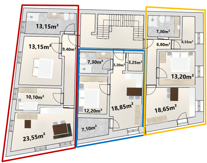 Le residenze si distinguono per AMBIENTI AMPI E LUMINOSI, distribuzioni interne eleganti e finiture di pregio, pensate per soddisfare le esigenze di una clientela raffinata e attenta alla qualità. Tutte le unità vengono consegnate CHIAVI IN MANO e dispongono di una CANTINA PRIVATA.