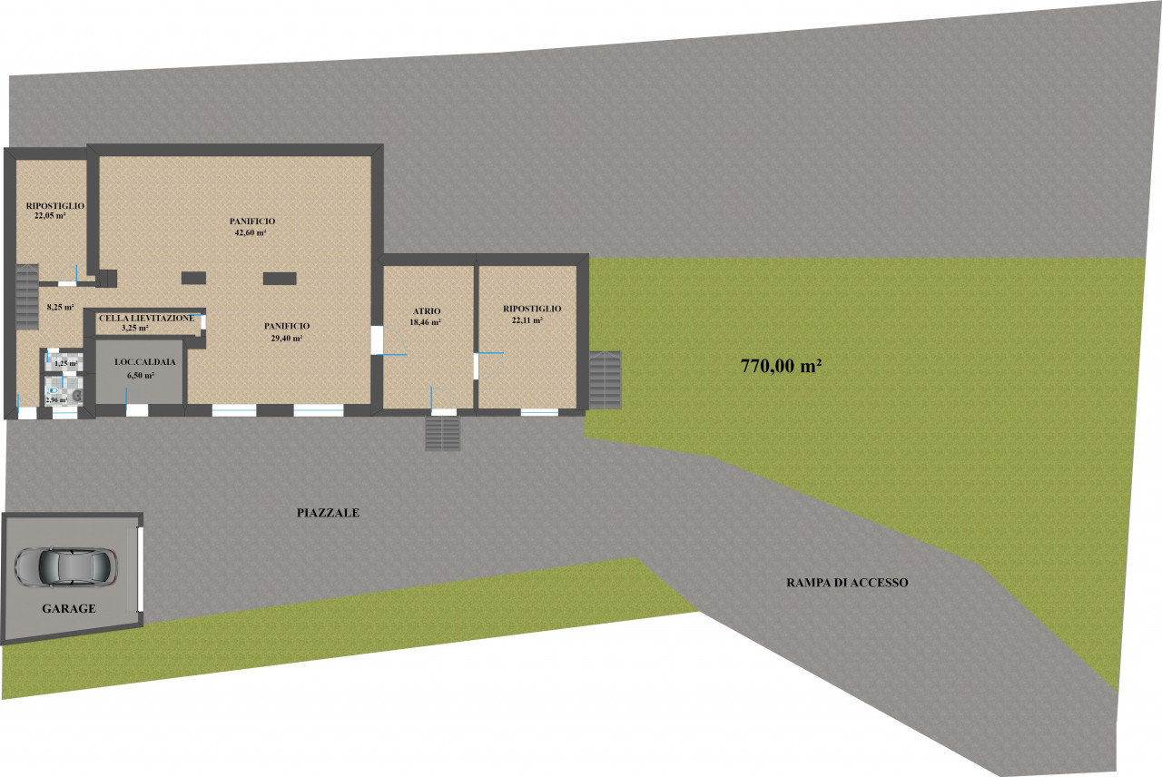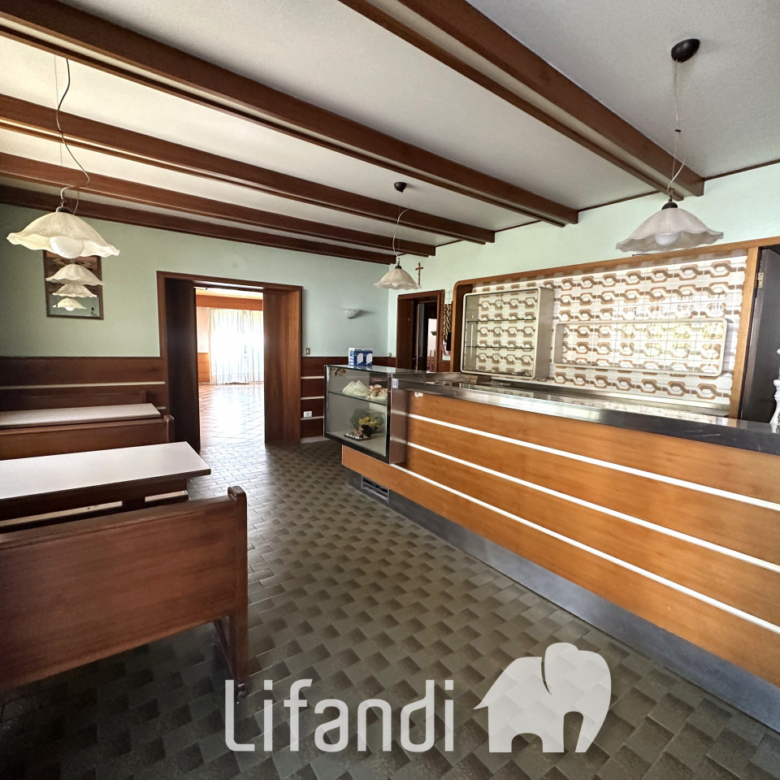 Inoltre, nell’area troviamo un panificio ancora in attività e un ristorante completo di sala, bar, cucina e ufficio, anche se questo è rimasto chiuso per gli ultimi 10 anni.Completano questa casa un’ampia area esterna di 770 mq, tra cortile, giardino, e piazzale per parcheggi.