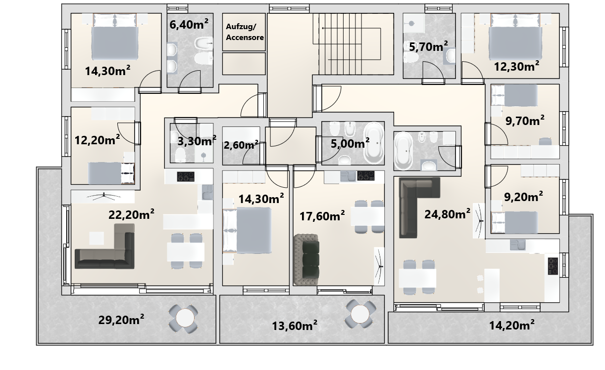 Tutti gli appartamenti sono CONVENZIONATI e quindi non utilizzabili come case vacanze. Il condominio sarà collegato al teleriscaldamento e la data di completamento è prevista per l’inizio del 2026. Garage di tutte le dimensioni possono essere acquistati a partire da 35.000€.
