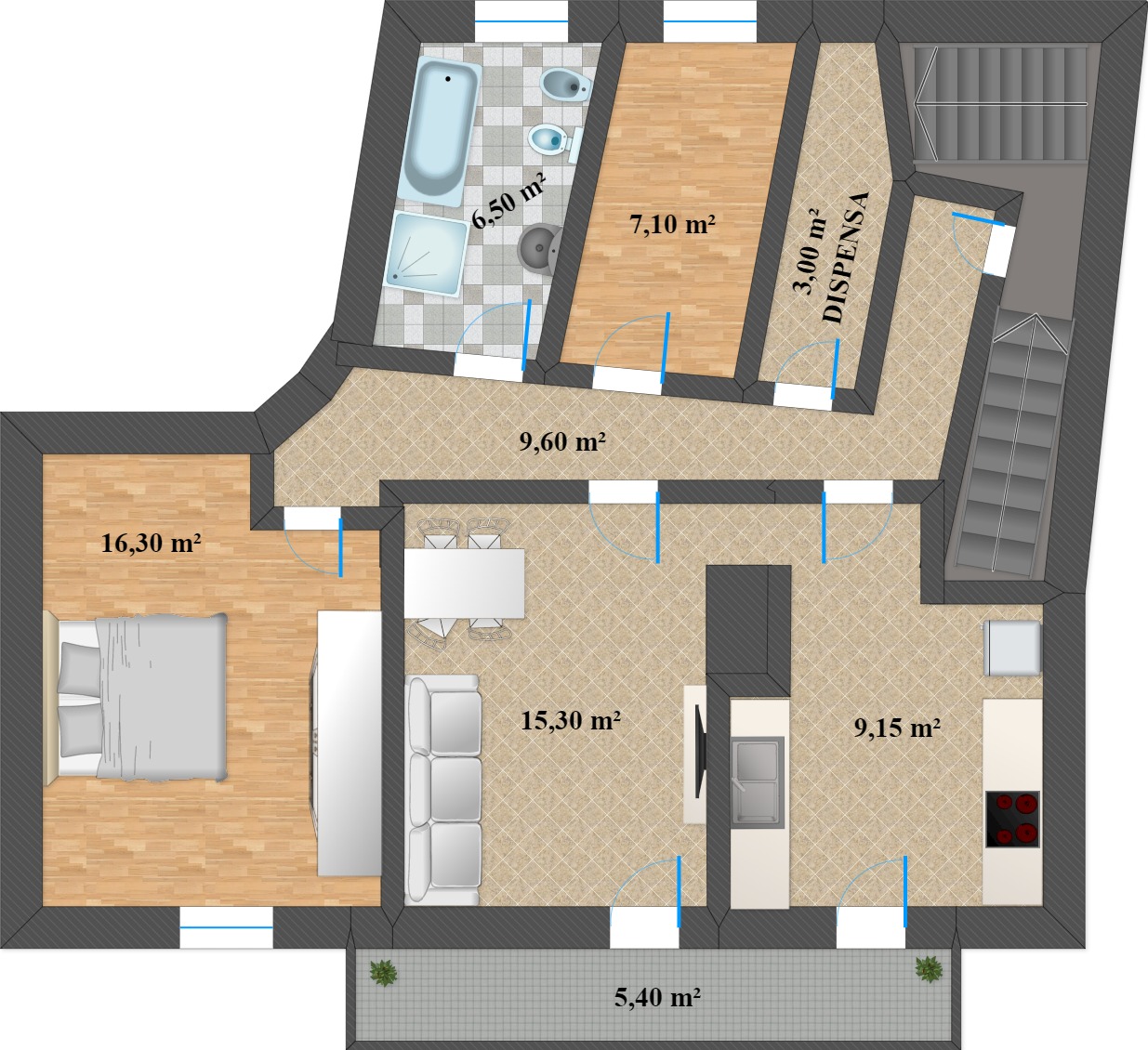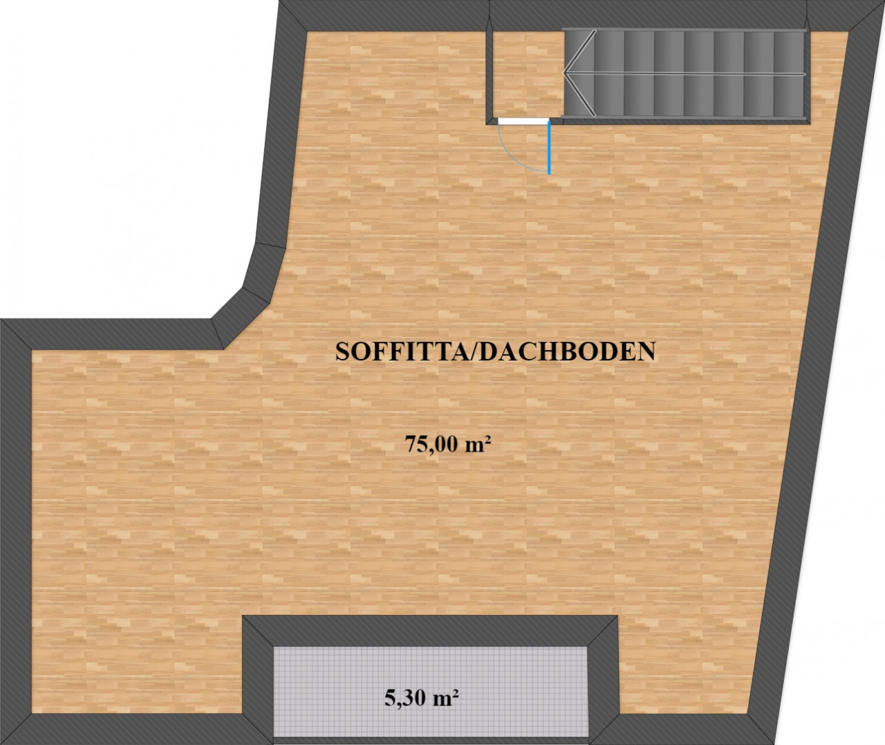 Dal sottotetto di 75 mq con balcone si puó ricavare un ulteriore appartamento.