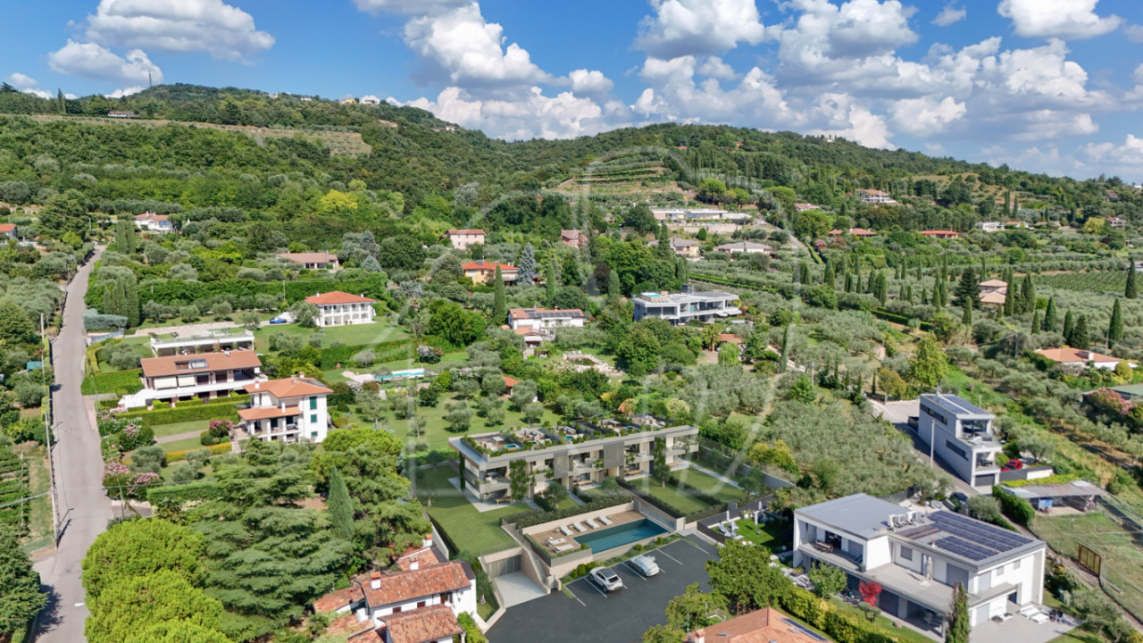 In posizione collinare dominante, immerso nel verde e nella quiete, nasce Villa Elen, un raffinato residence di nuova realizzazione composto da sole 10 unità abitative. Il complesso, dal design moderno e armoniosamente integrato nel paesaggio, offre appartamenti con vista panoramica sul Lago di Garda, ampi spazi esterni (giardini privati al piano terra e terrazze/roof top ai piani superiori), piscina condominiale e finiture di alto livello.